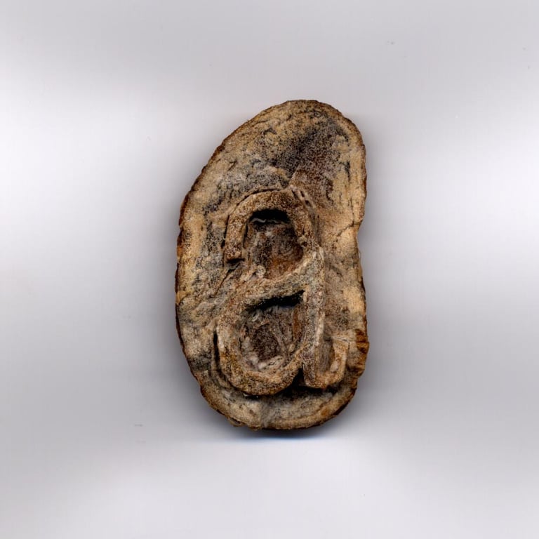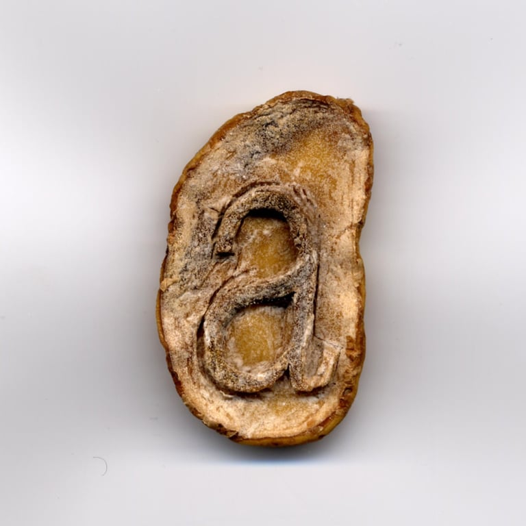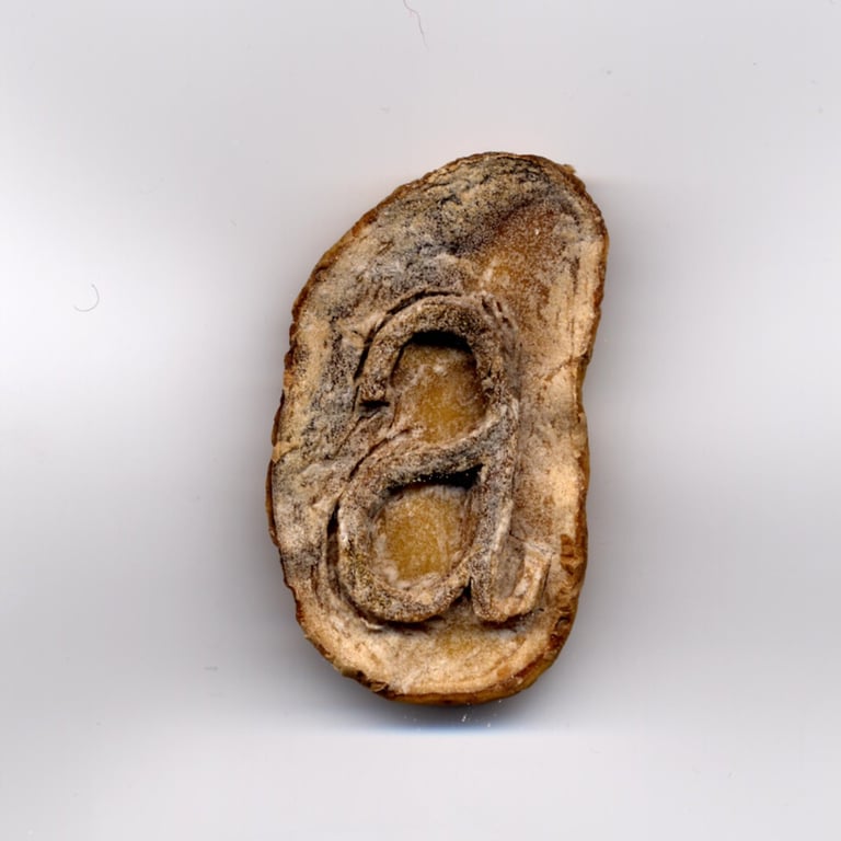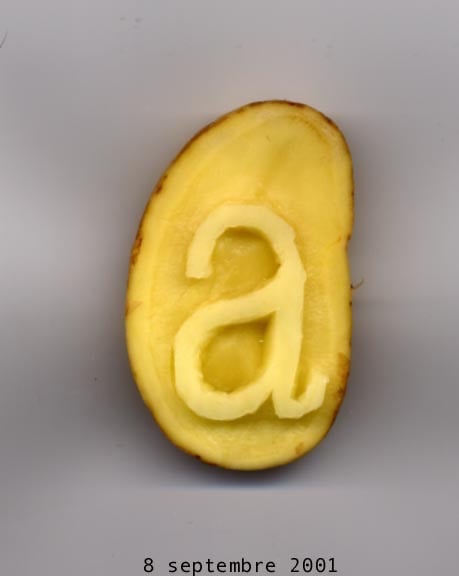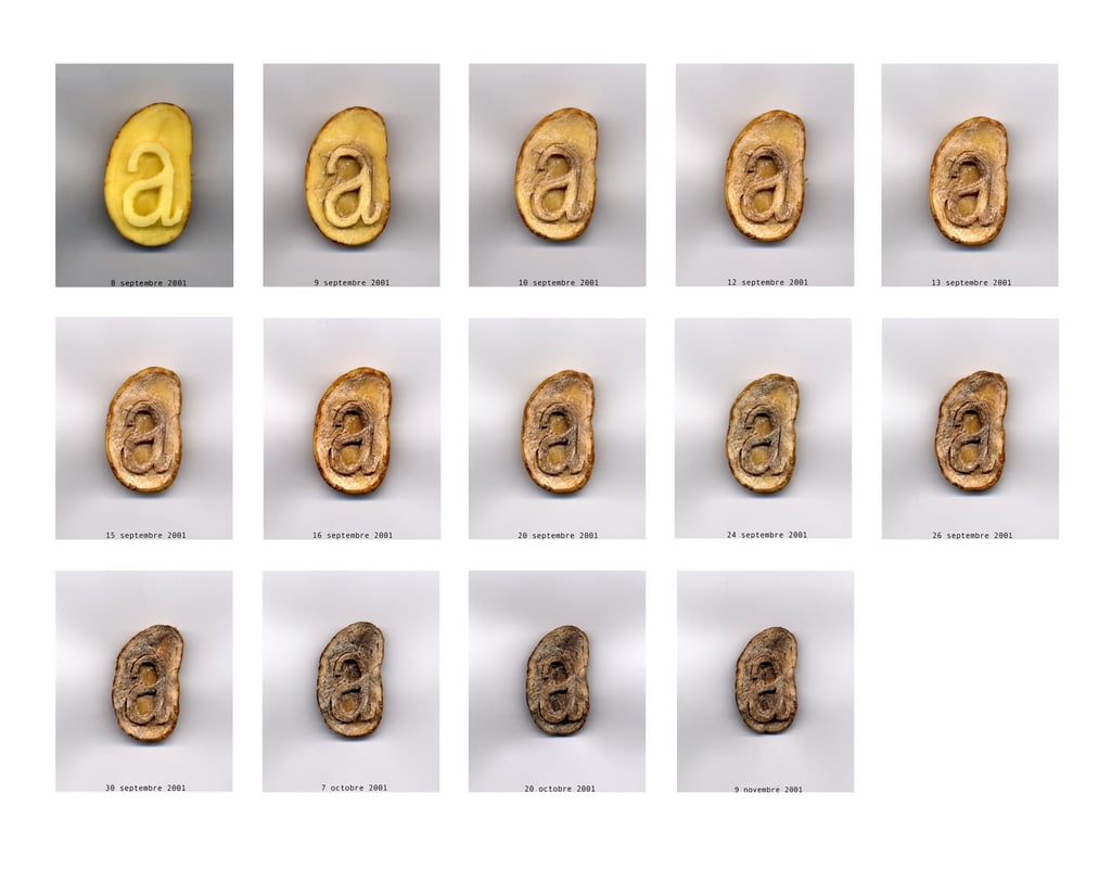 Suite de 14 images d'une même demi-pomme de terre taillée, effectuées au scanner entre le 8 septembre et le 9 novembre 2001.